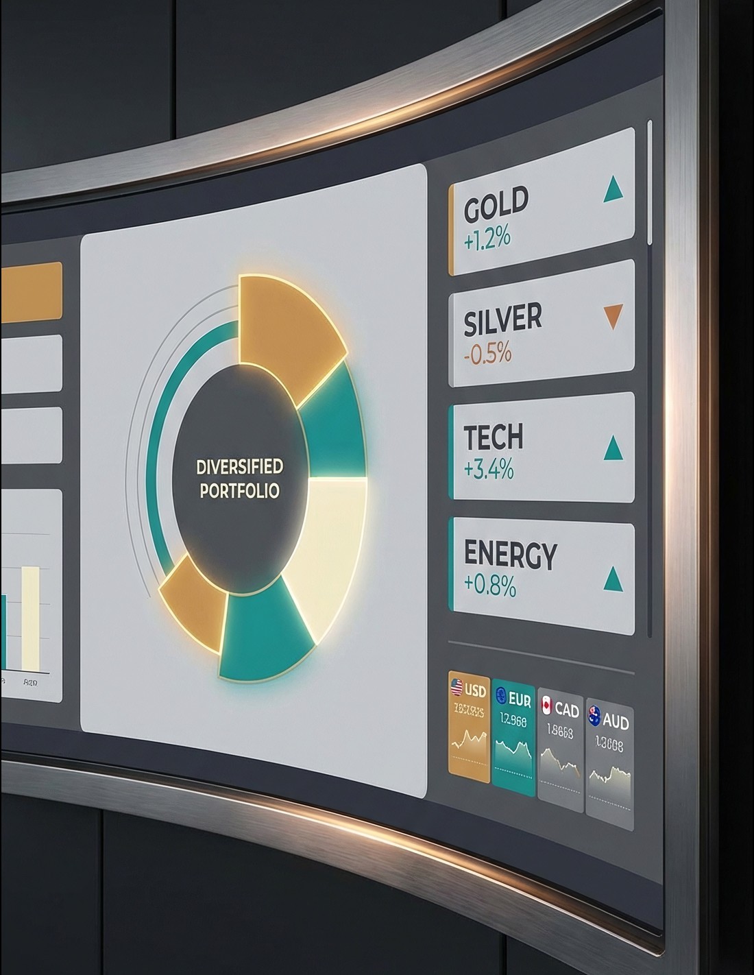 A diversified portfolio of 25-40 positions, deeply analyzed, balanced between precious metals and growth sectors, spread across multiple global currencies.